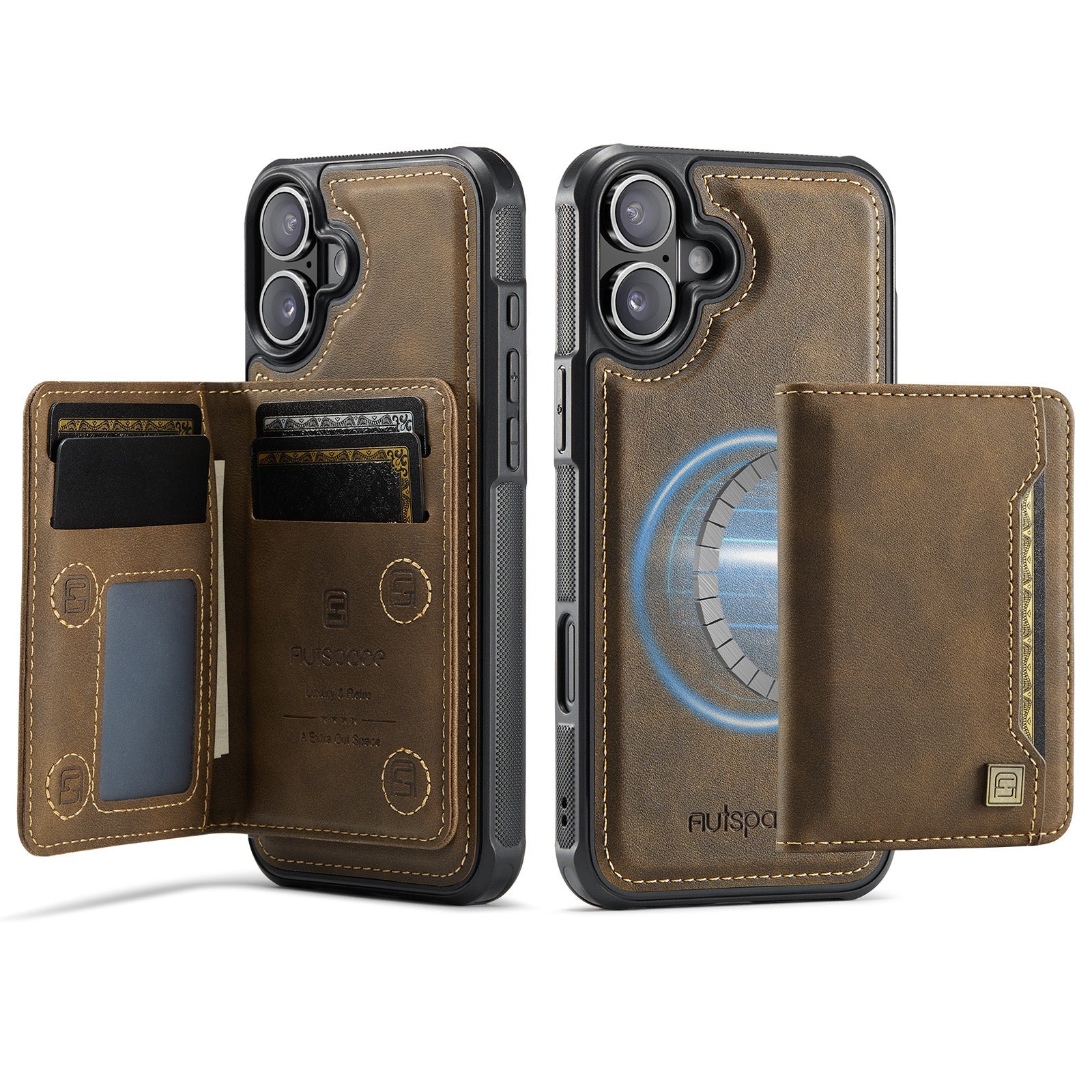 New 2-IN-1 RFID Blocking Card Holder Wireless Charging Leather Phone Case for iPhone