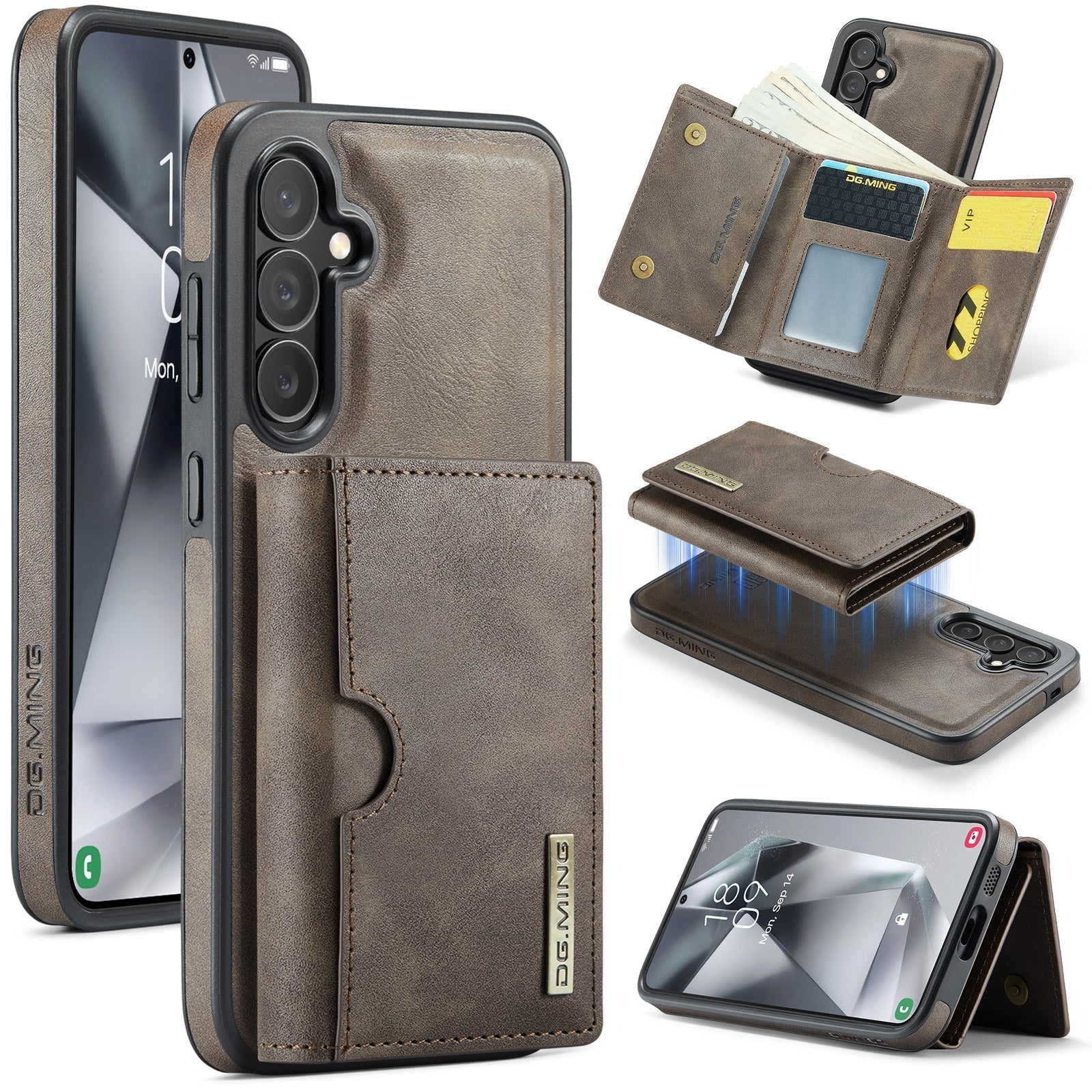 New 2-IN-1 RFID Blocking Wallet Card Holder Leather Phone Case for Samsung