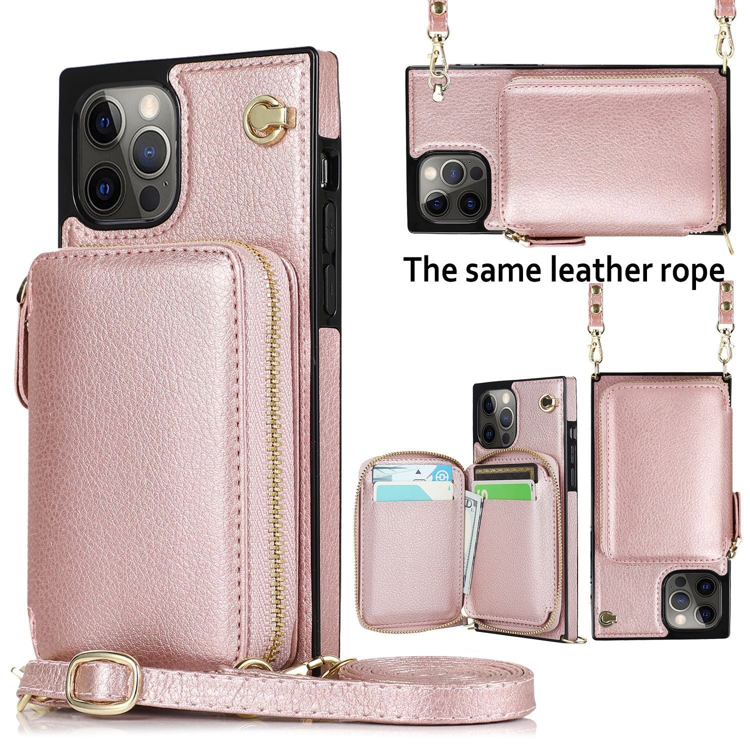 New Crossbody Zipper Wallet Leather Phone Case for iPhone