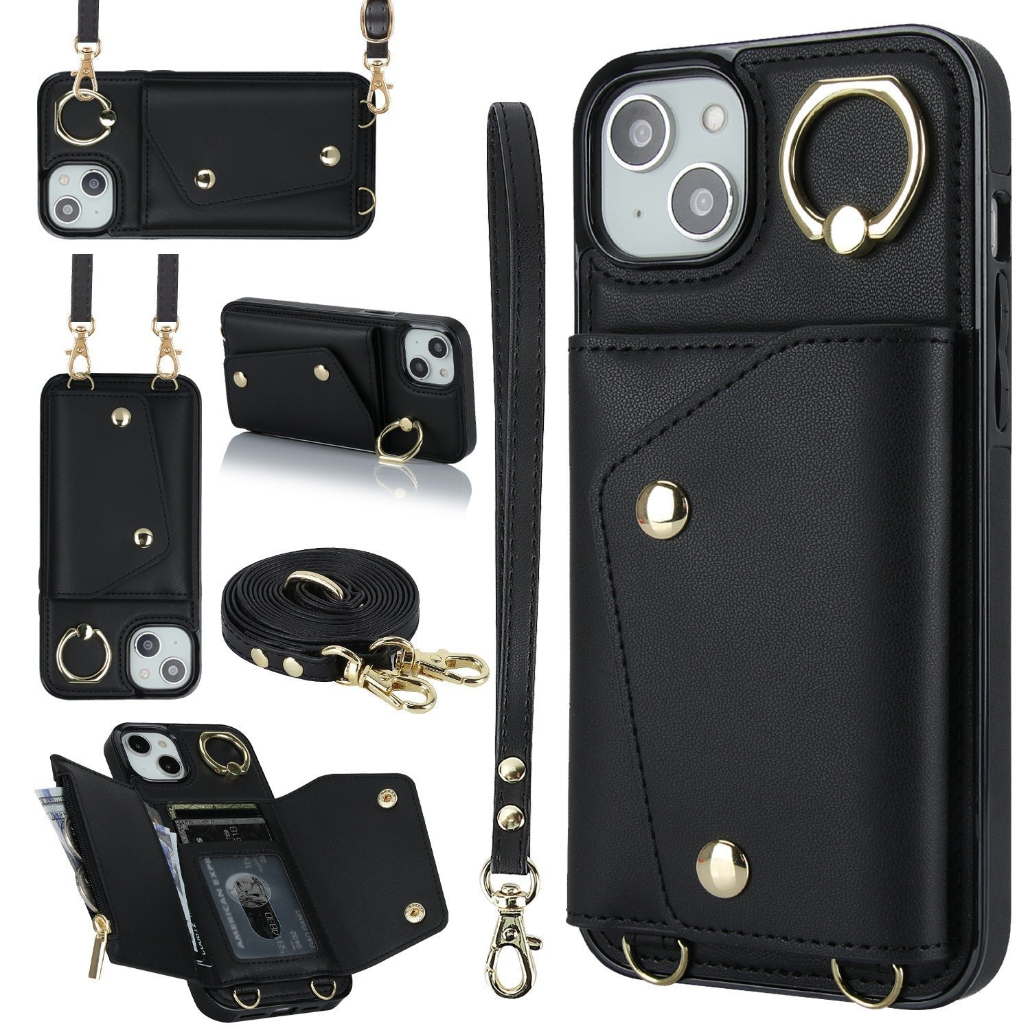 New Crossbody Zipper Wallet with Long and Short Lanyard Leather Phone Case for iPhone